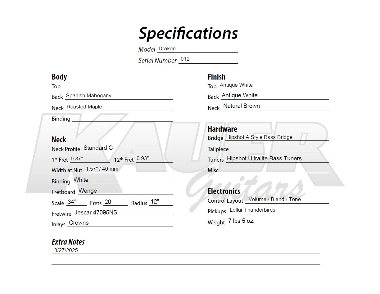 34” scale, 12” radius, 20 Jescar 47095NS frets