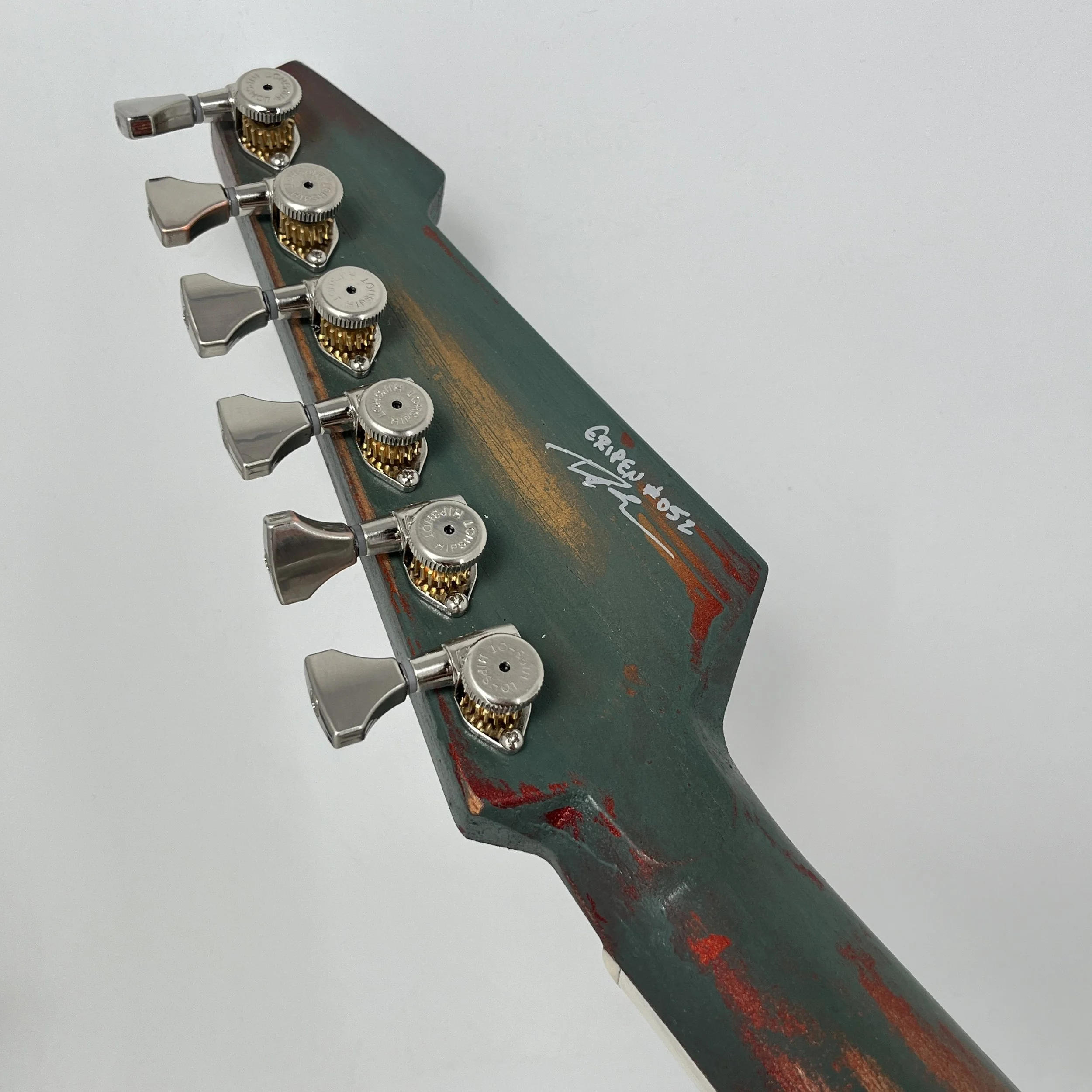 Arrrr mateys- tis plunder we’ve found from the briny depths. This Gripen features one of our favorite finishes “Shipwreck”. Not a relic or a vintage finish, Shipwreck is an organic, textured finish that looks like we drug it off the beach from a pirate shipwreck.