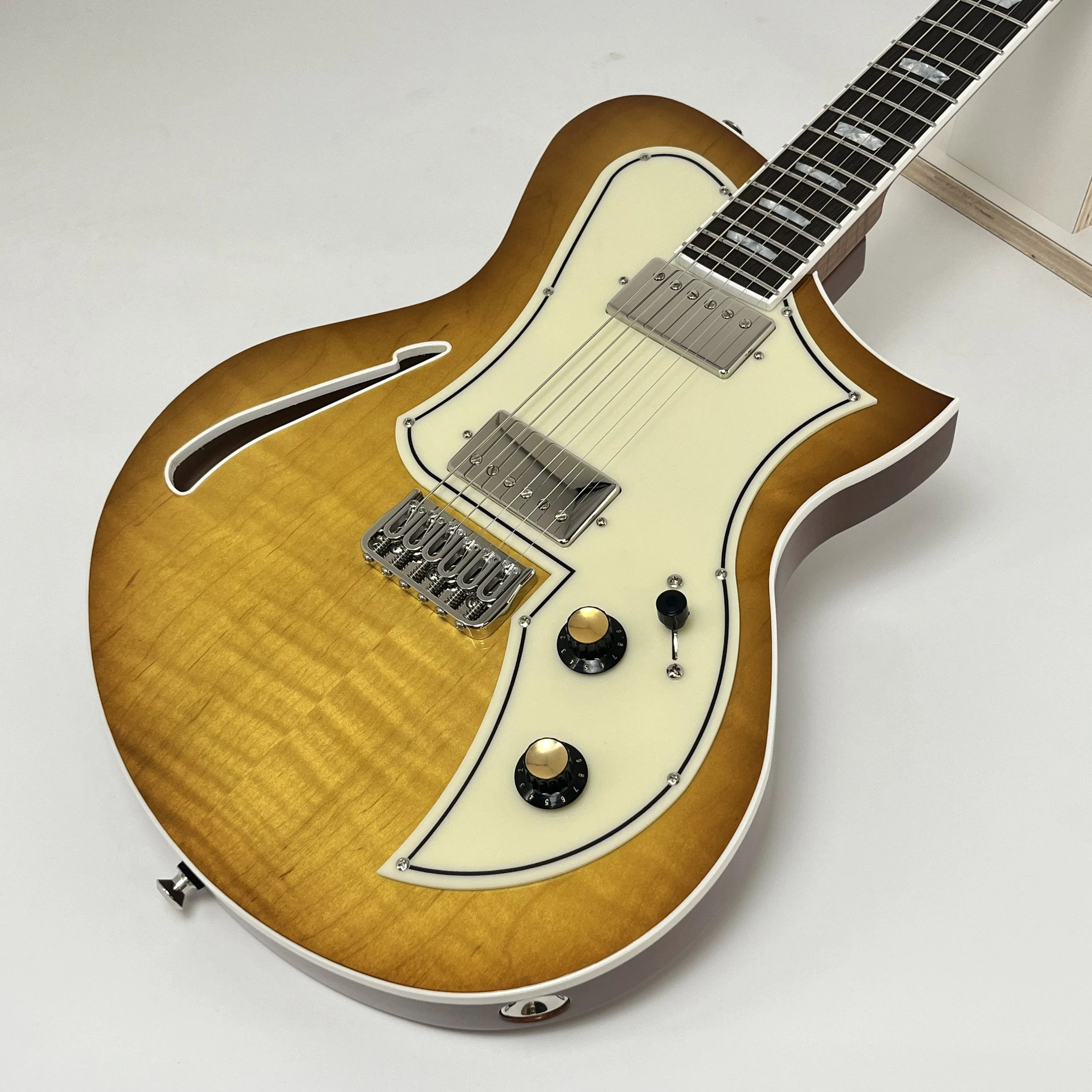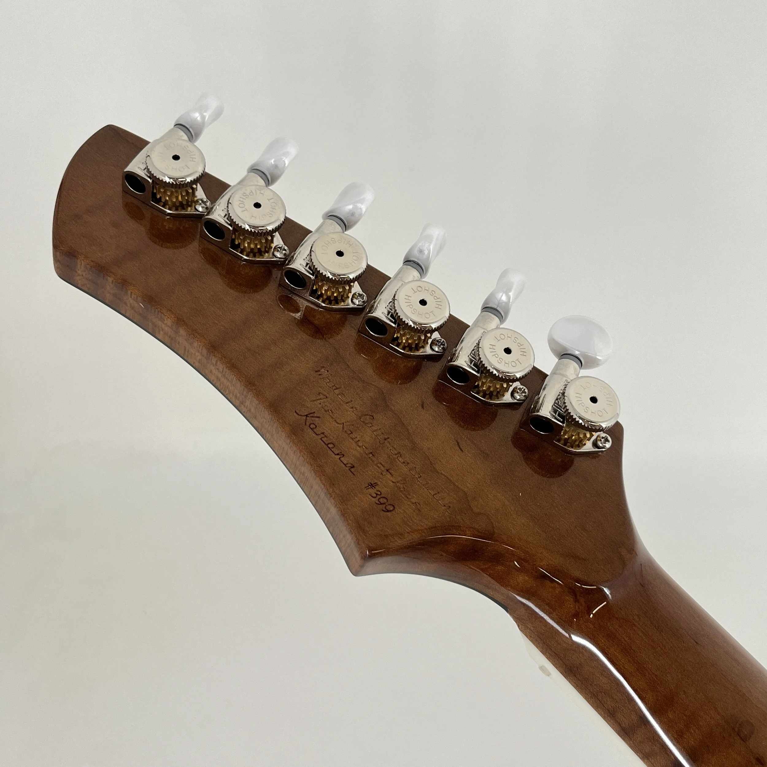 Korona Supreme truly lives up to its name. It’s our favorite version of the Korona and this Supreme features an incredibly warm flamed maple top and in a departure from normal spec, a Hipshot 6 saddle hardtail bridge.