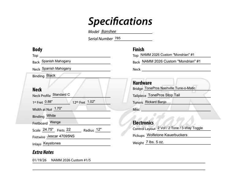 We don’t even know where to start in how many superlatives to place upon this Piet Mondrian inspired Banshee. #1 of our 5 piece set built for NAMM26, this has been our most ambitious project to date and were absolute show stoppers! Read more about it here on our Special Editions page.