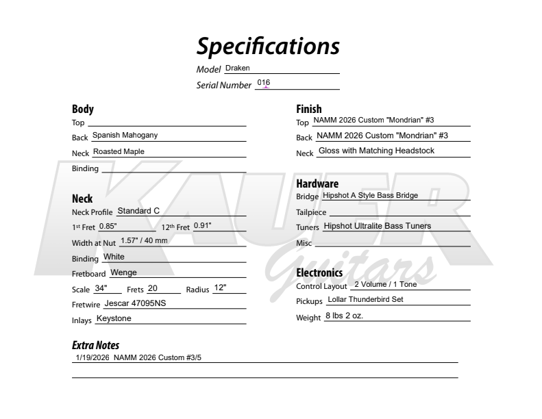 Spanish Mahogany Body, Roasted Maple neck with carbon fiber stiffening rods