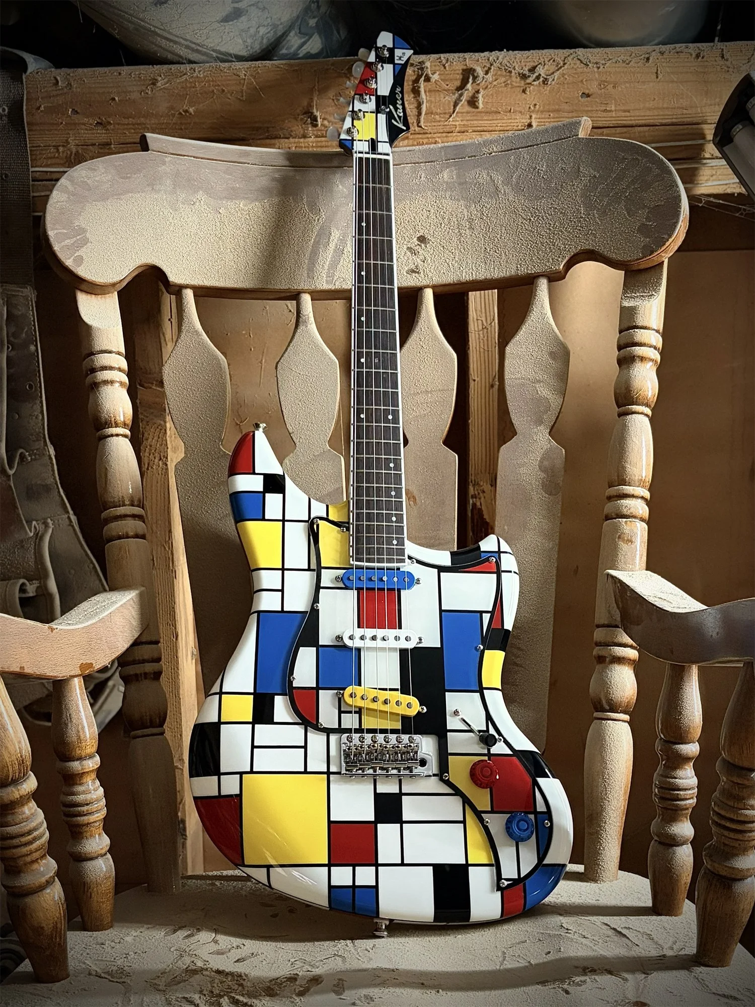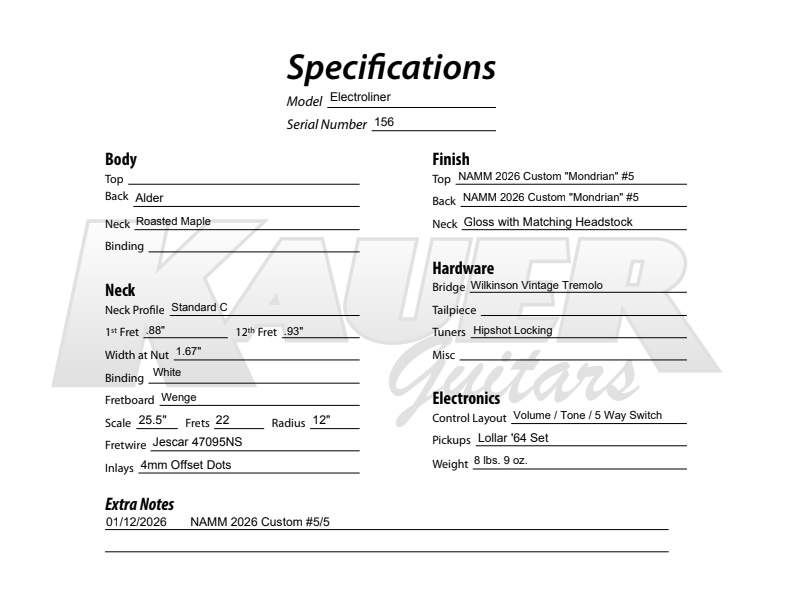 This Electroliner might be the secret winner of the NOMMdrian lineup, certainly our most slept on model. My favorite detail is the pickguard itself, taken with a slightly different approach than the rest of the lineup, with the heavy pinstripe creating the illusion of depth. Combined with our favorite Lollar ‘64 set and a great excuse run some fun colors for pickup covers9