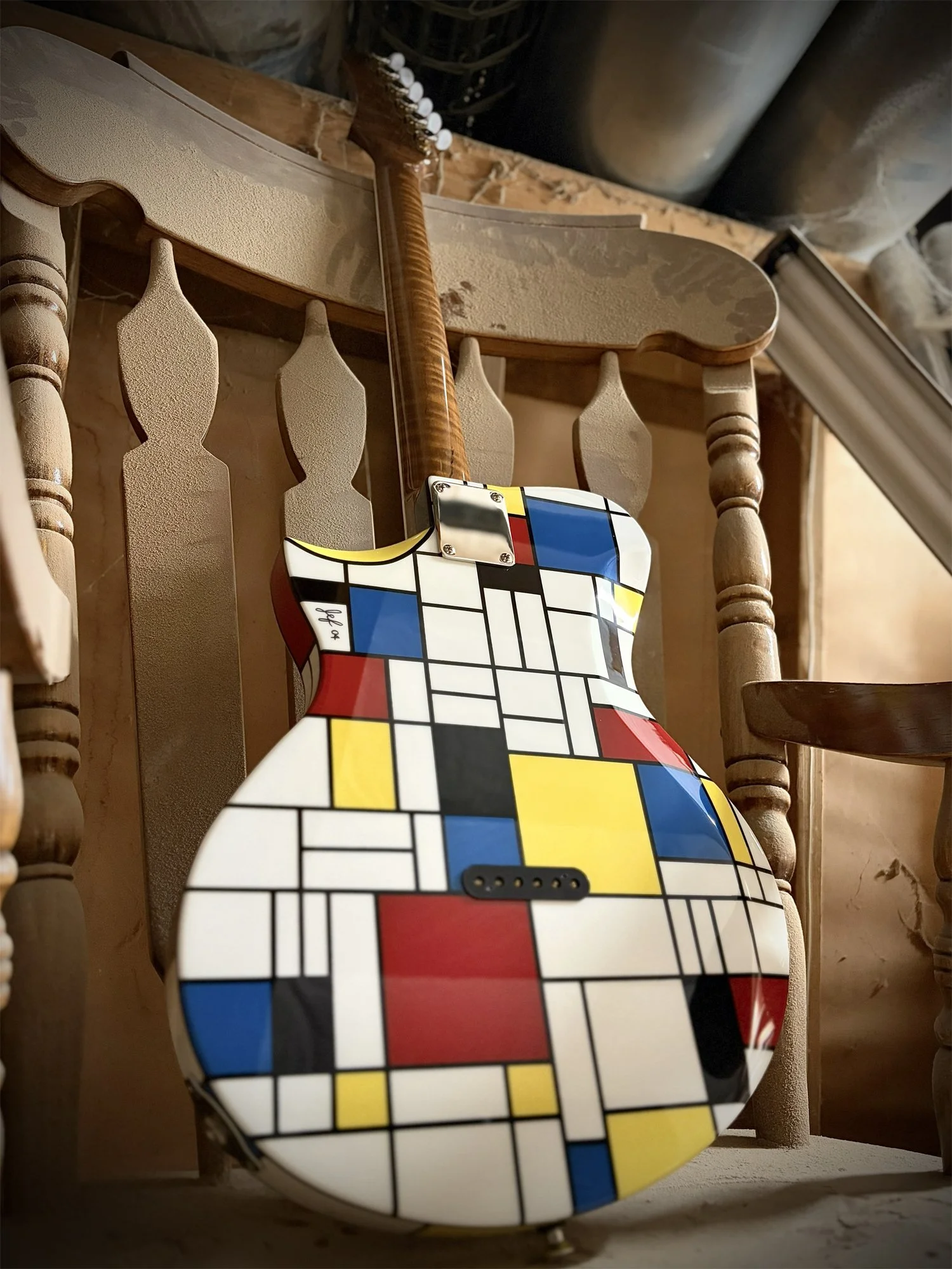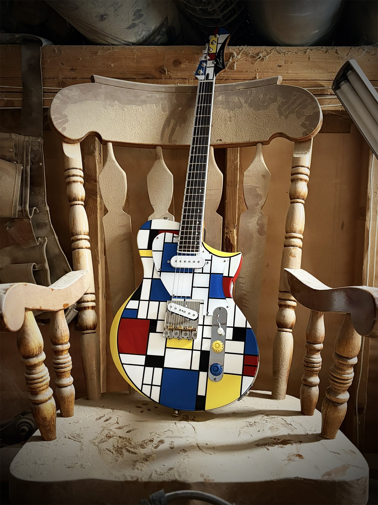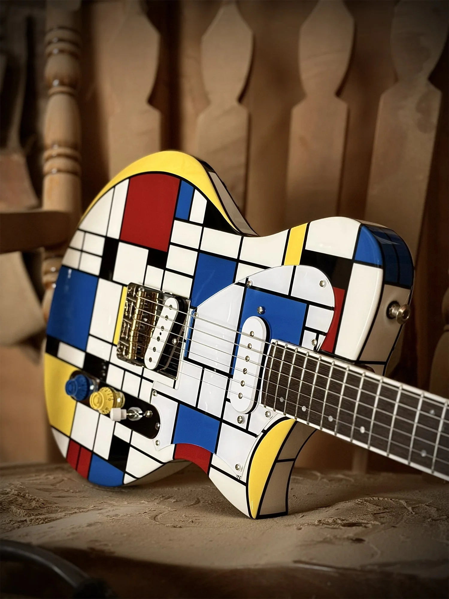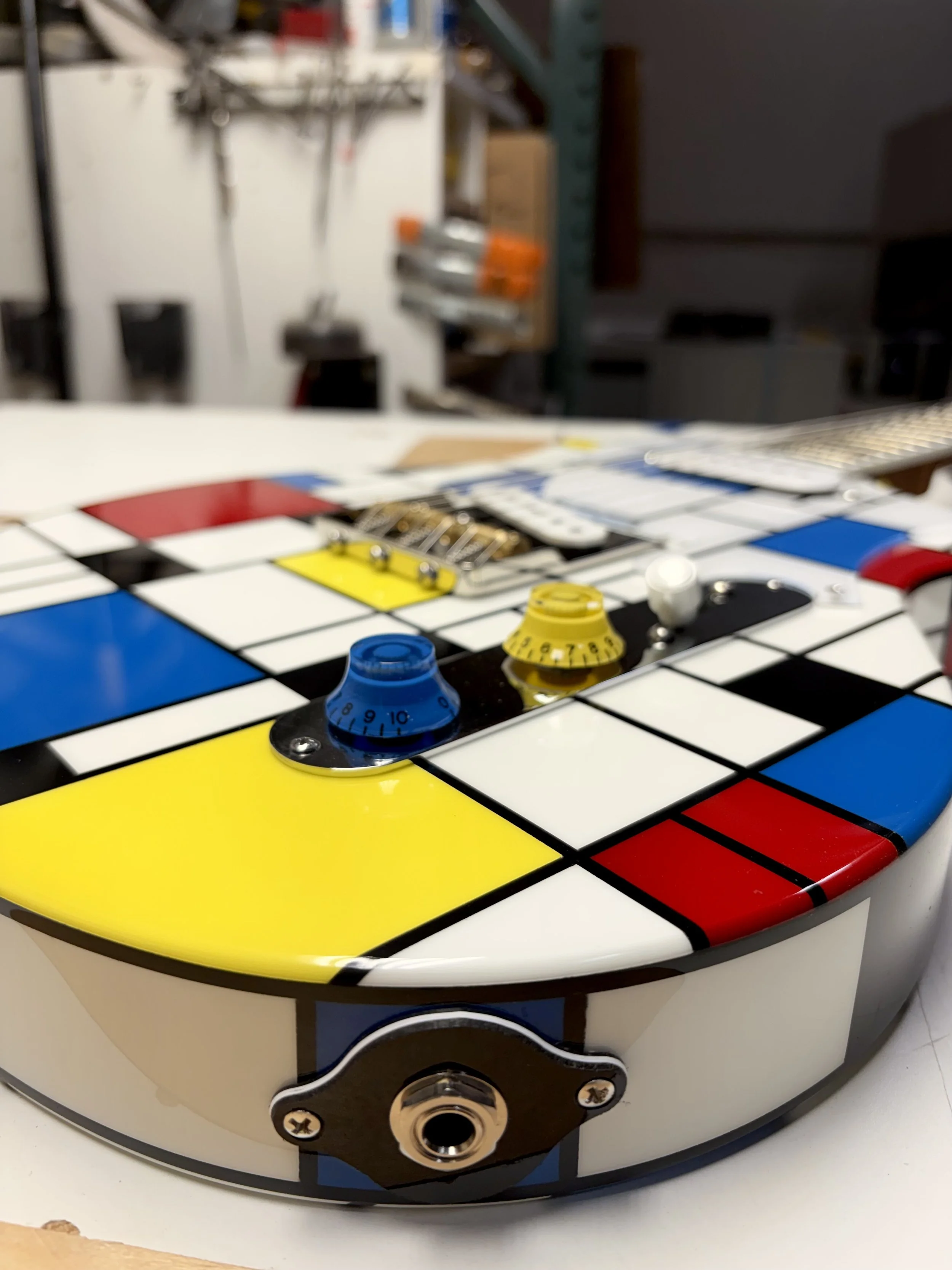 This Korona is a celebration of both Korona’s new curves and a case study in juxtaposition. Josh did an amazing job combing Mondrians linear nature with the curves of Korona. This particular one features my favorite pickup from Lollar, the Melody90 neck combined with a J-Street bridge, it’ll take you from jazz to rock and everything in between.