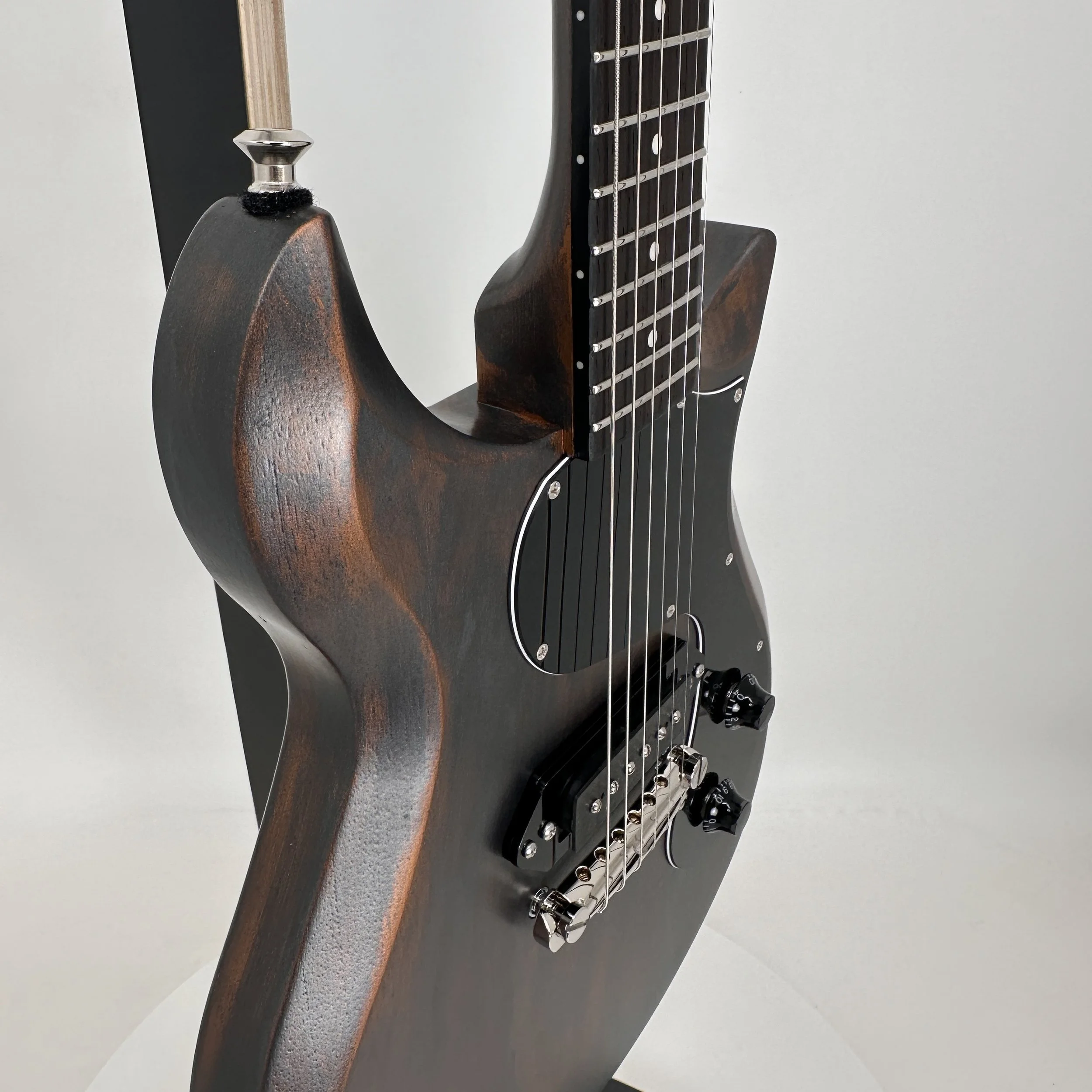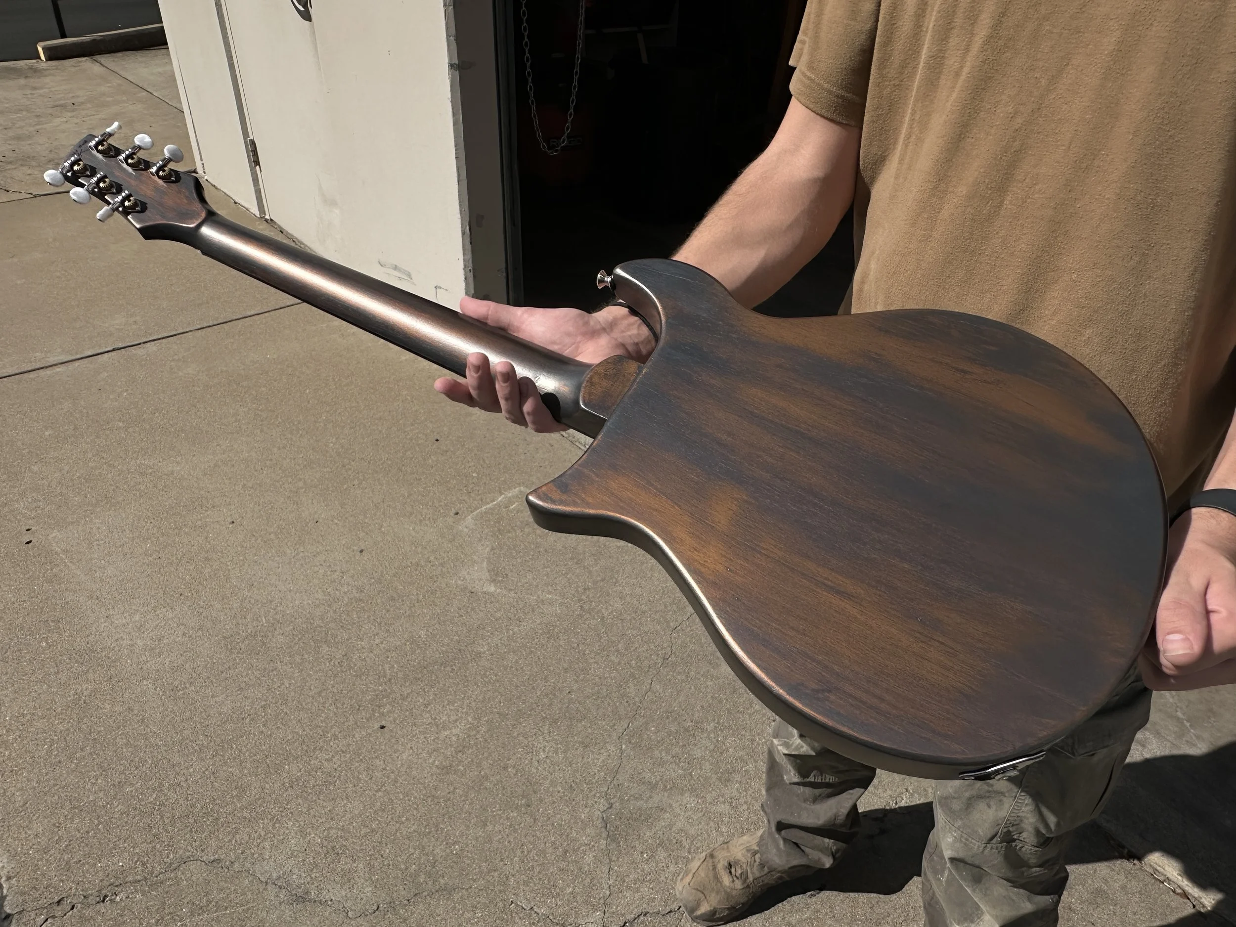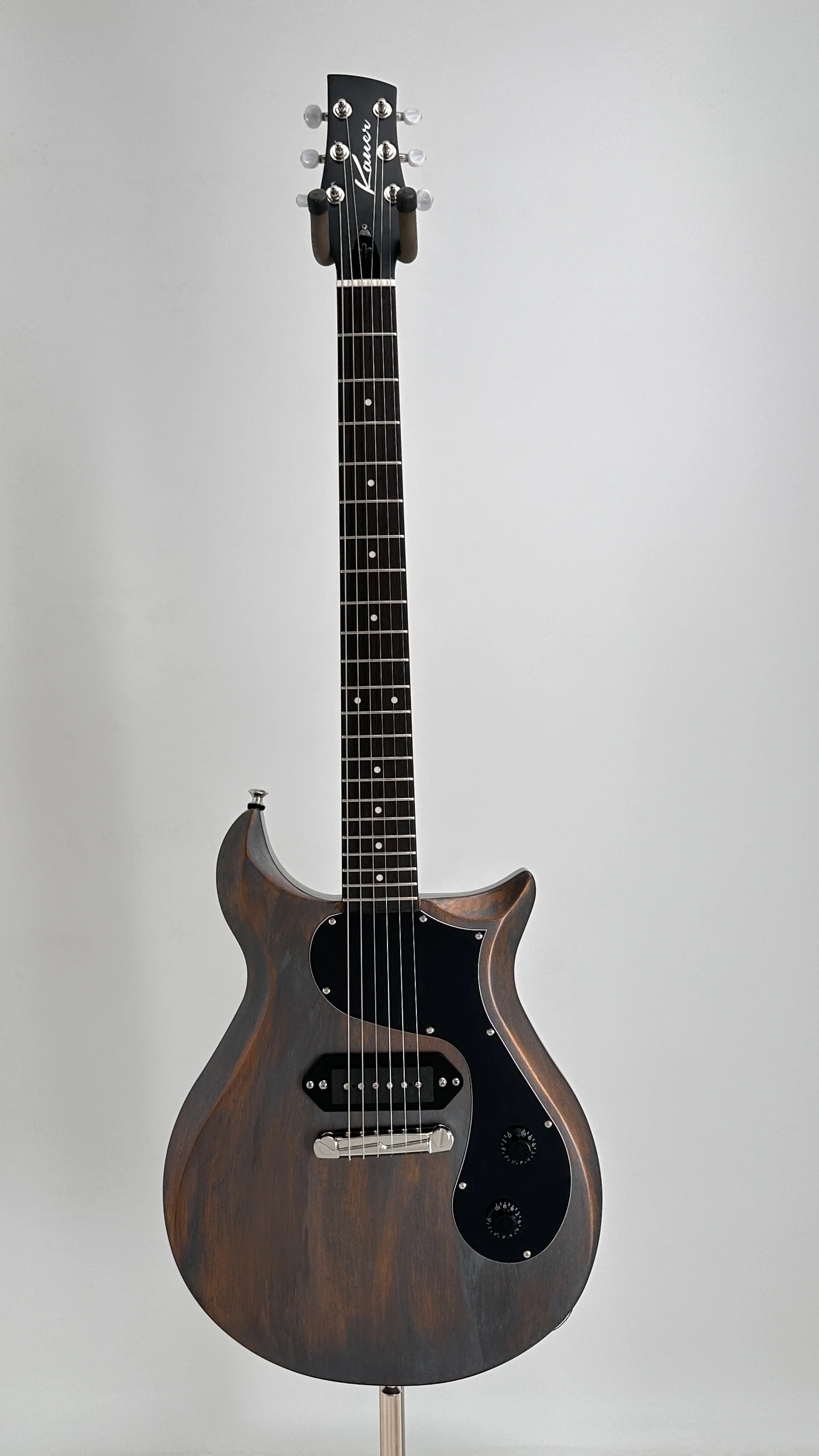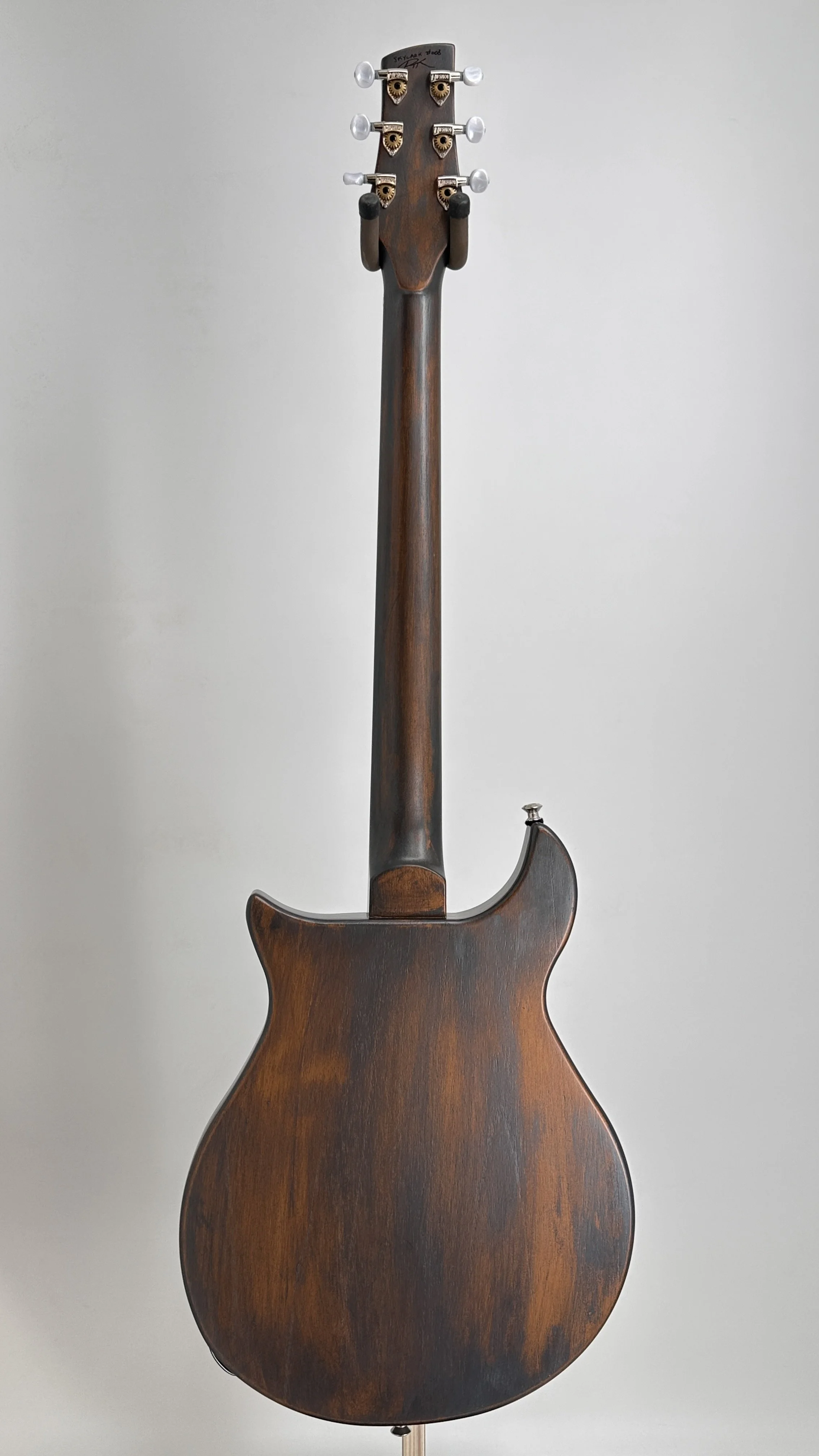 We cooked this finish up recently on a customer suggestion and it’s become a shop favorite, this Tarnished Bronze Skylark looks like it came from the Land before Time. In a killer twist, we took Doug’s favorite Lollar - The Chicago Steel - a lapsteel pickup and made our own dogear style ring making it both easily height adjustable and sneaky from a distance. The CS is just the biggest p90 you’ve ever heard.